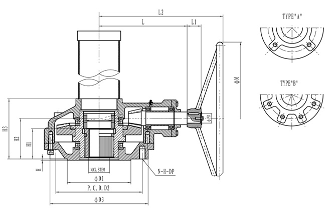 1.該裝置是直接安裝在閘閥和截止閥上的手動(dòng)裝置。