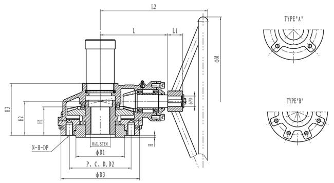 1.該裝置是直接安裝在閘閥和截止閥上的手動(dòng)裝置。